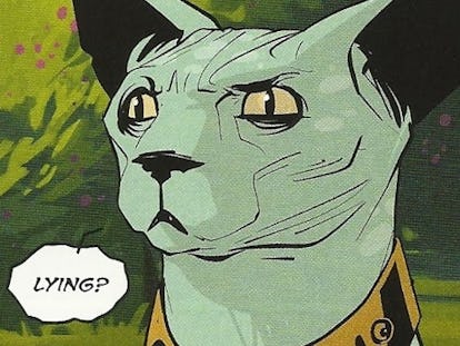 Warum sie cool ist: Ich habe bereits gesagt, dass die Fähigkeit von Lying Cat, zu erkennen, wann Menschen lügen, einer der besten Gründe war, Saga zu lesen, und deshalb gehört sie auch auf diese Liste! Im Gegensatz zu den meisten verwöhnten Hauskatzen, Lügenkatze ist weniger ein Haustier und eher ein Geschäftspartner für Assassinen mit einem goldenen Herzen, Der Wille. Und im Gegensatz zu den meisten Hauskatzen ist sie mehr als bereit, ihr Bett mit jemandem in Not zu teilen. Awww, wer ist ein gutes Kätzchen!