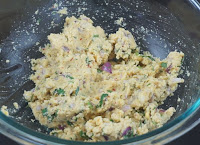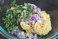 - mescolare le cipolle e le foglie di coriandolo con il dal mix e ricavarne delle palline
