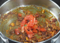 Aggiungere il pomodoro tritato e quindi aggiungere l’estratto di tamarindo (piccolo tamarindo dimensione limone imbevuto di acqua per 20 minuti), la sinistra sopra urundai mix / dal mix, acqua necessaria, sale richiesto e cuocere per 5 – 6 minuti.