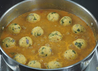 - aggiungere il paruppu urundai e cuocere per 4 5 minuti.
