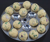 Vapore le palle urundai / dal su una piastra idli per 10-12 minuti. Ungere la padella idli con un po ‘ d’olio prima di posizionare le palline (opzionale).